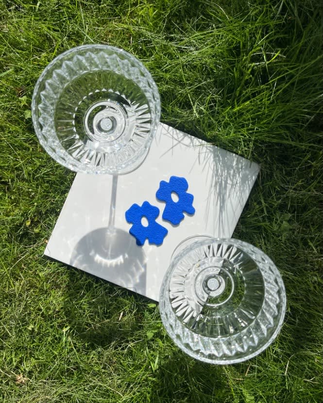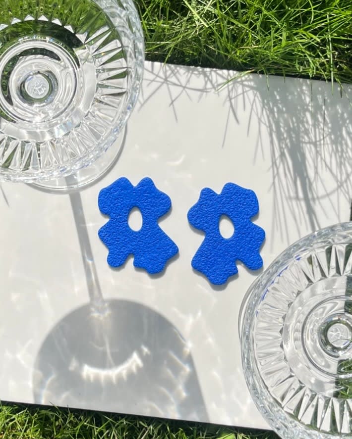 Handgjord av polymerlera som gör att varje par skiljer sig åt i storlek, färg och design.