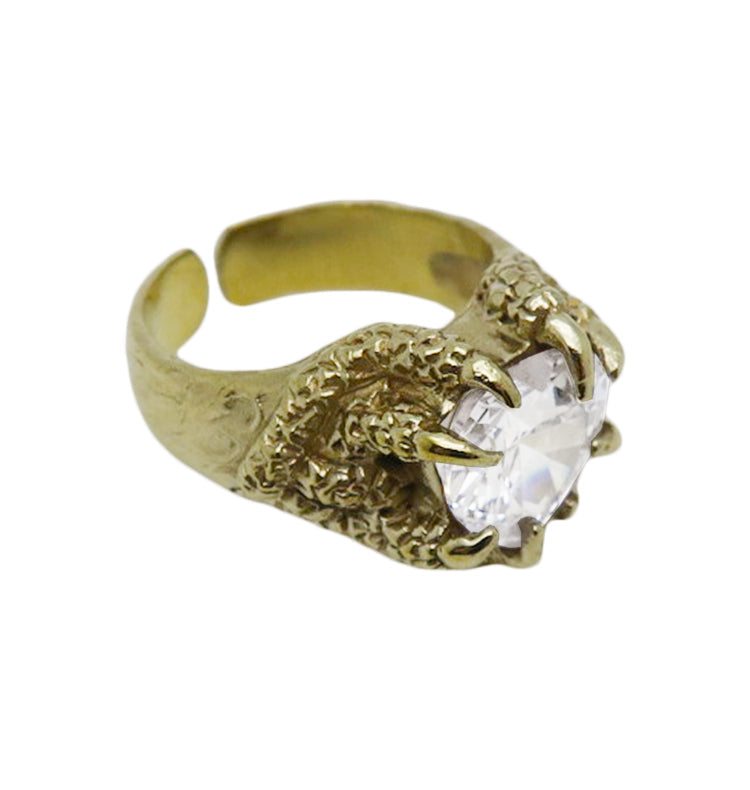 Sätt stilen med en karaktäristisk ring i mässing. Ringen är i form av åtta klor som håller fast ett skimrande hjärta gjord av zirkon sten. Bär ensamt eller kombinera med andra ringar för en personlig look.