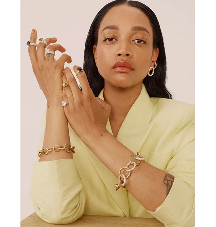 WOS uses PVD plating (Physical Vapor Deposition) on stainless steel. This technique provides a surface that stands out for its superior resistance to corrosion, water, sweat, and daily wear compared to conventional gold platings.