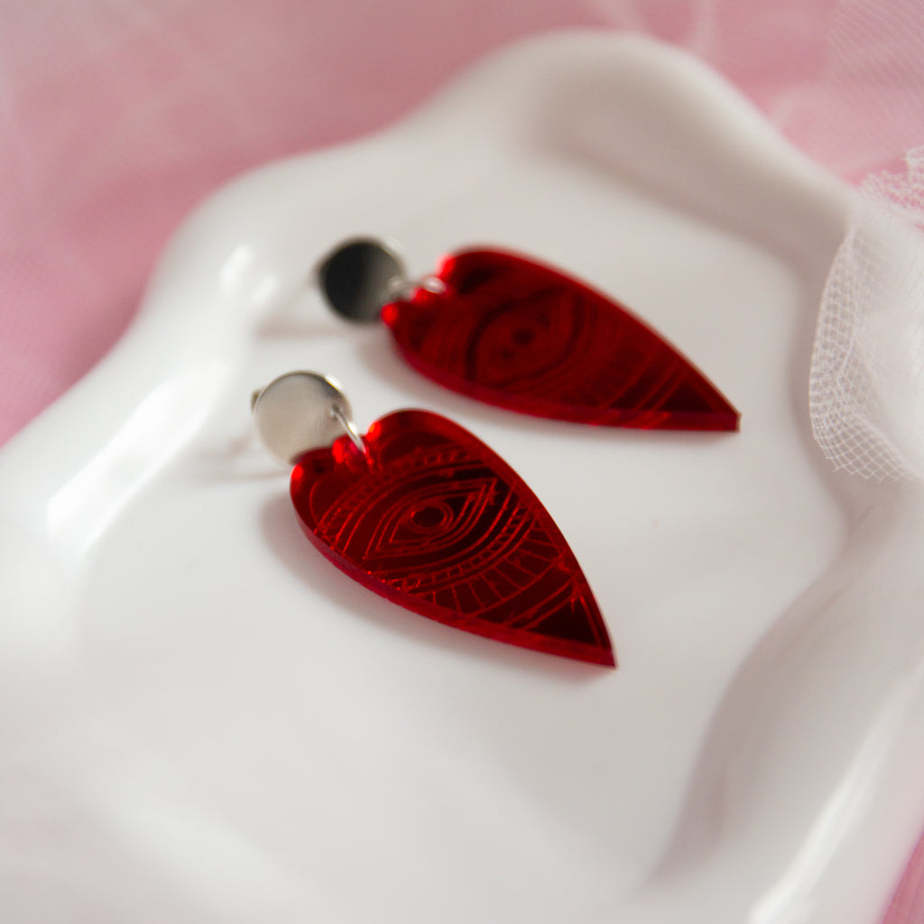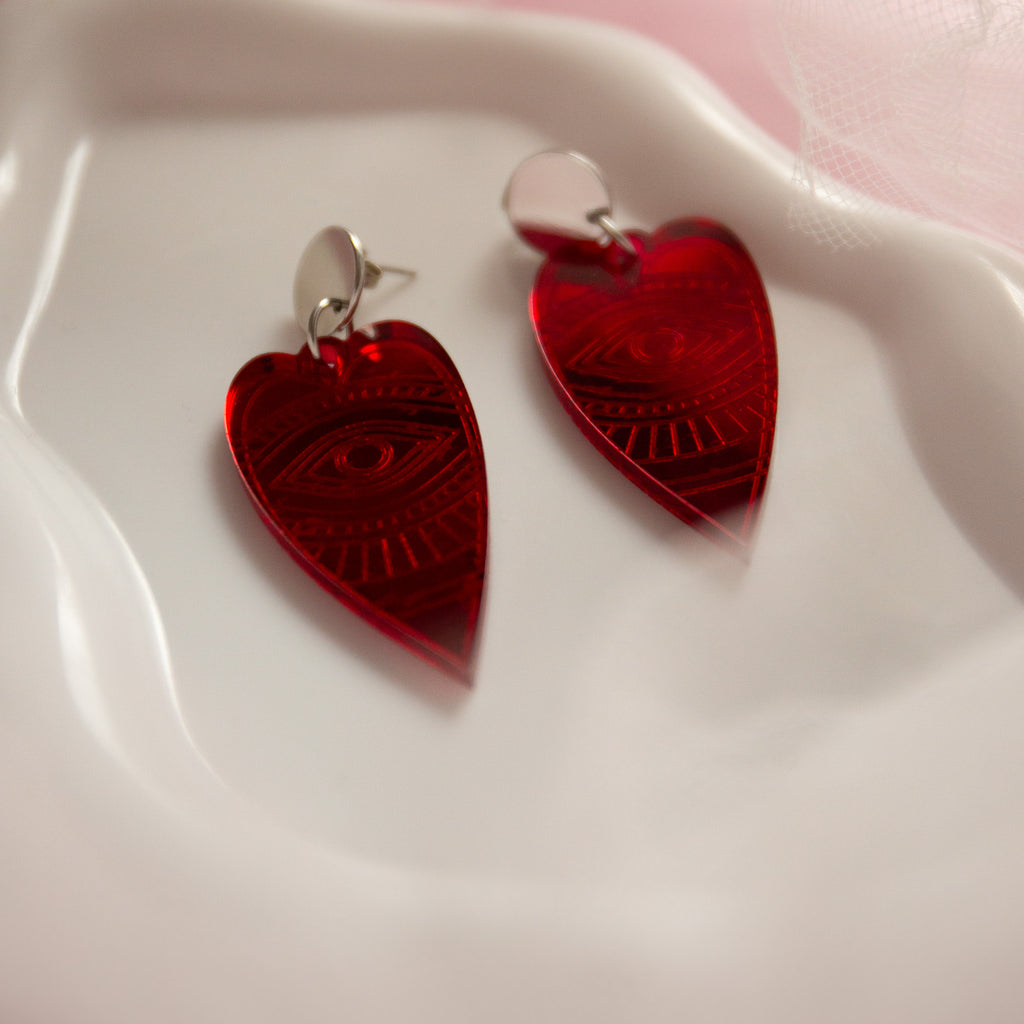 Red heart eye earrings