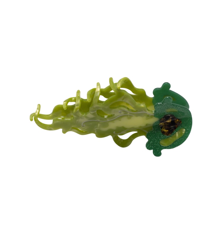 Give your hairstyle a boost with the Jellyfish hair clip green! A fun hair clip in the shape of a jellyfish. The hair clip is available in the colors glittery dark green, melange light green and melange brown.